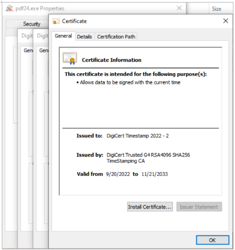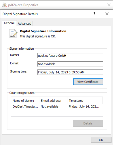 The EXE file has a legitimate signature; however, the PDF24 software has vulnerabilities that attackers were able to exploit to load this malware and bypass EDR systems effectively.
